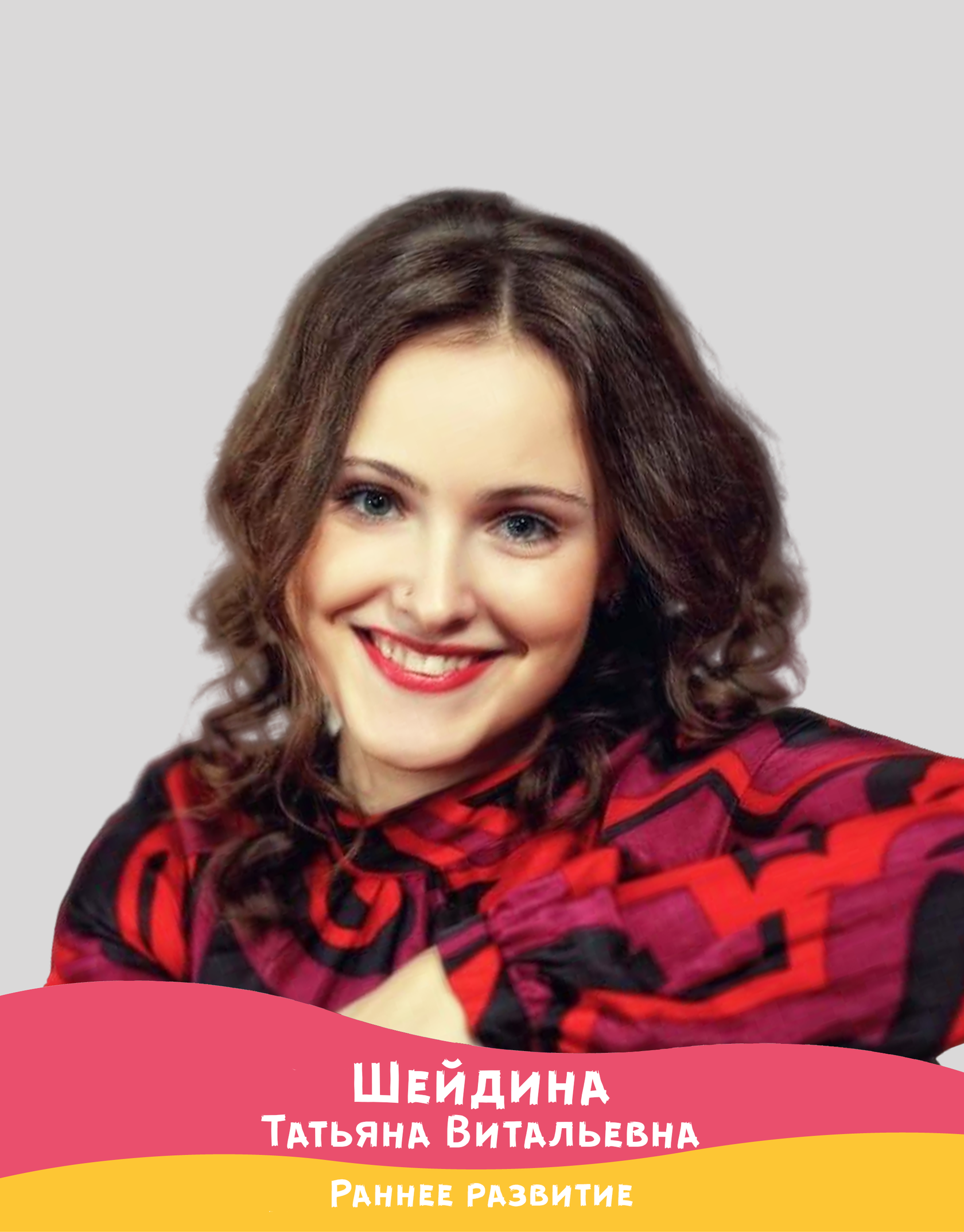 | Шейдина Татьяна Витальевна Образование Смоленский Государственный Университет, психолого-педагогический факультет, профиль : "Логопедия". Опыт С 2014 года по 2017 год проработала в Международной сети "Бэби- клуб" Специалистом по работе с детьми в г. Новороссийск. Вела развивающие занятия с детьми от 8 месяцев до 7 лет. Прошла очное обучение в Методическом центре "Бэби- клуба" города Москвы, получив сертификат "Бережное развитие интеллекта детей". С 2015 года и по сей день консультирует и занимается с детьми с речевыми нарушениями. Личное Вместе с супругом воспитают дочь Арину 2 года. |
